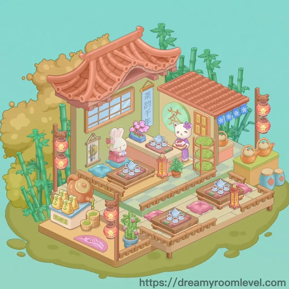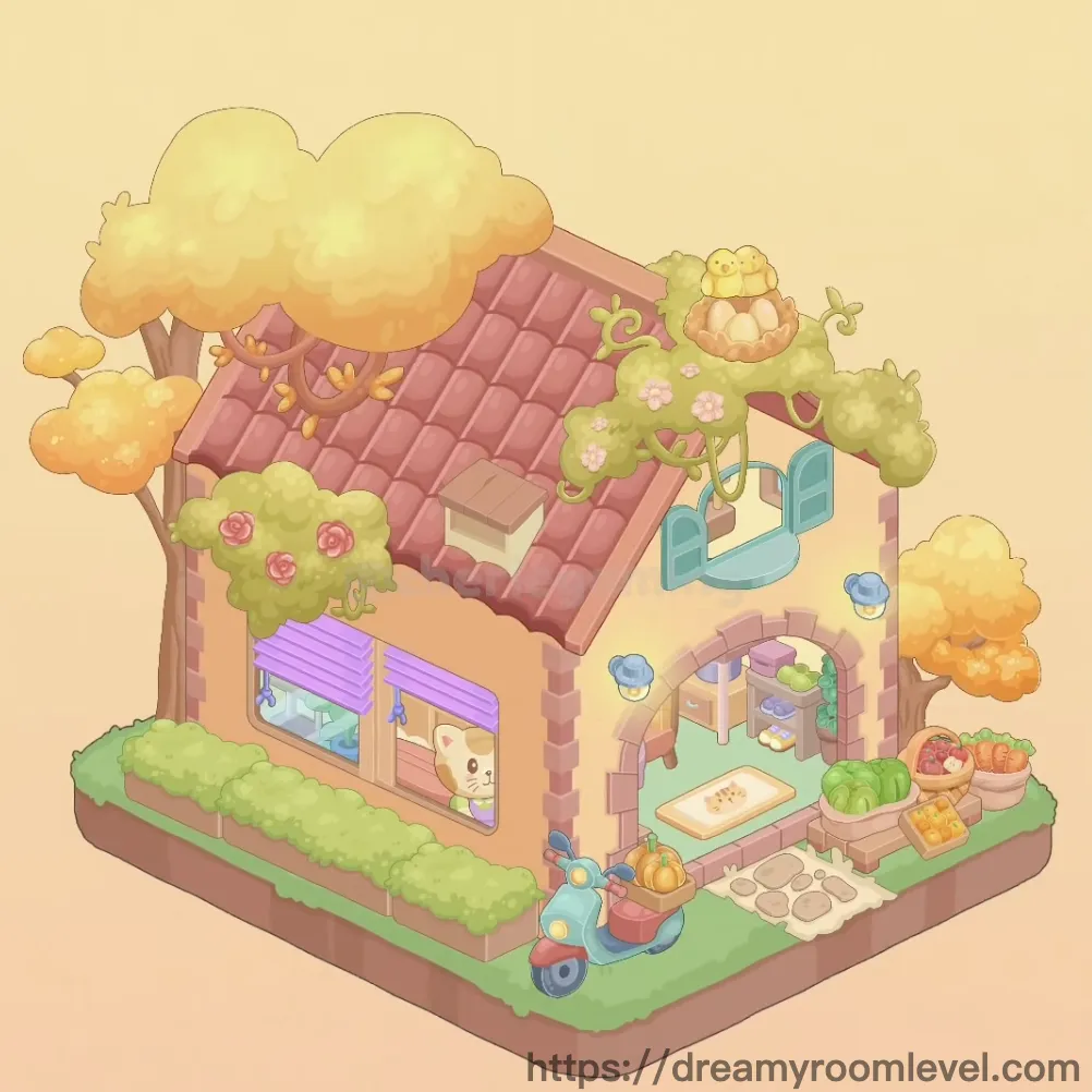 - When placing hanging ornaments and vines, work from the ceiling downward to achieve natural draping effects in Dreamy Room Level 504