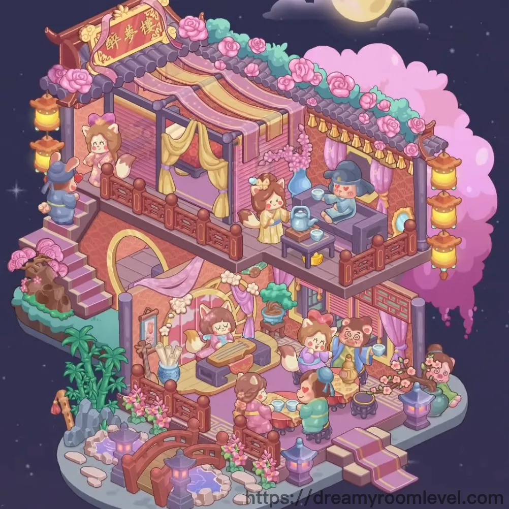 - The multi-level structure requires careful attention to the staircase placement first, as it determines the flow between floors in Dreamy Room Level 518